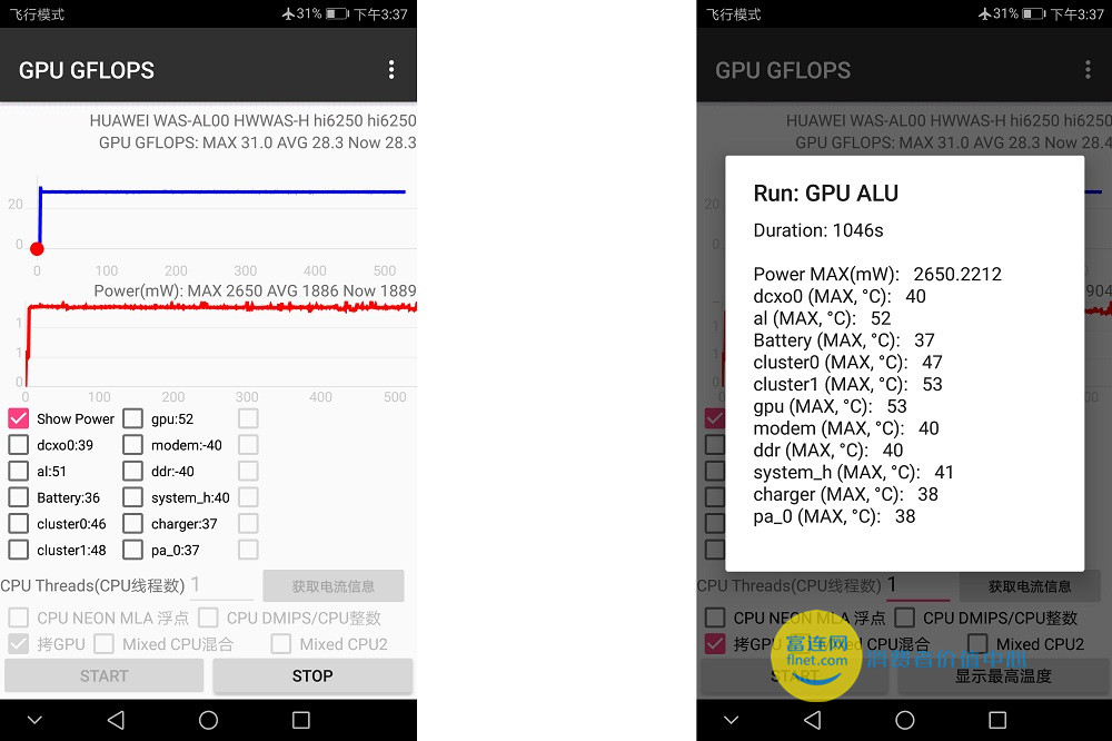 GPU这里倒是主要表现一切正常,终究功能损耗比CPU那里低。测得最高温度53℃,也显著高过荣耀6X的49℃,排热确实抓狂。