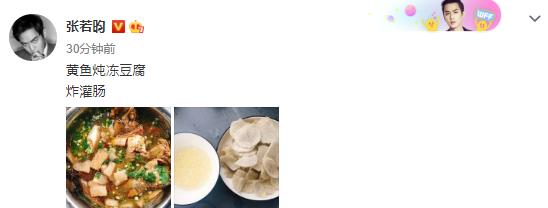 8月5日,晚饭饭点一到,张若昀准时上线晒出今日份解锁的新美食,有黄鱼炖冻豆腐和炸灌肠,这晚餐杠杠滴,又是被馋到的一天。再看张若昀晒出的美食照,第一道黄鱼炖豆腐看